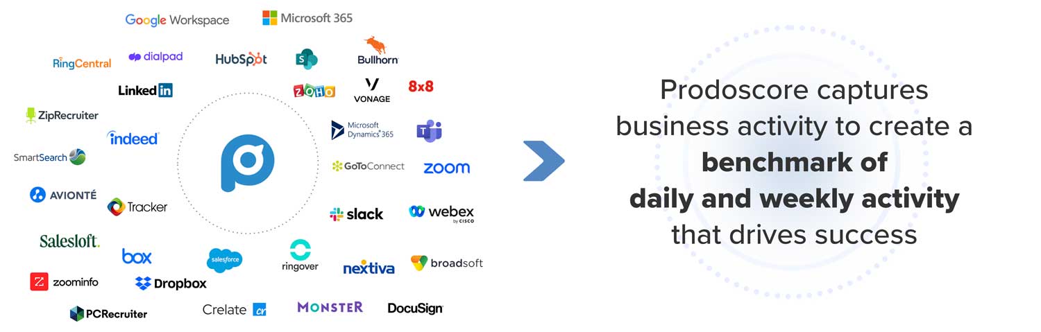 With Prodoscore, employees learn to prioritize high-value, revenue-generating activities and limit low-value tasks. Prodoscore isn’t another tool—it’s the layer that unifies and amplifies the value of the tools you already own. It aggregates activity and translates it into a clear performance roadmap, showing employees how to use and maximize tools—individually and compared to peers. Prodoscore ensures leaders have what they need to show a measurable return on investment. By visualizing opportunities to increase activity and results, Prodoscore analytics directly impacts the bottom line.